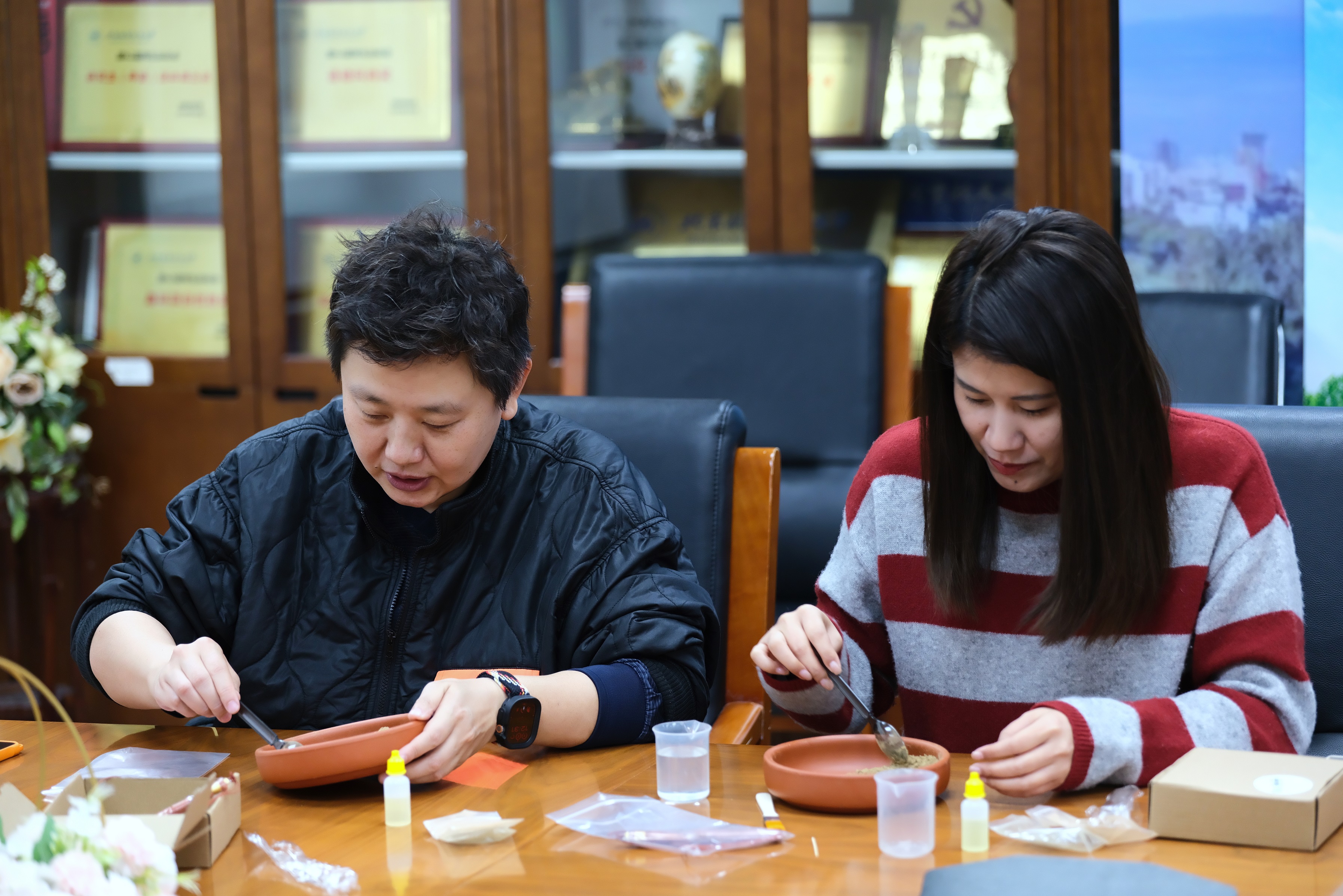 现场欢声笑语与幽幽香气交织,老师们互相交流制作心得,在繁忙的教学科研之余享受难得的宁静时光。