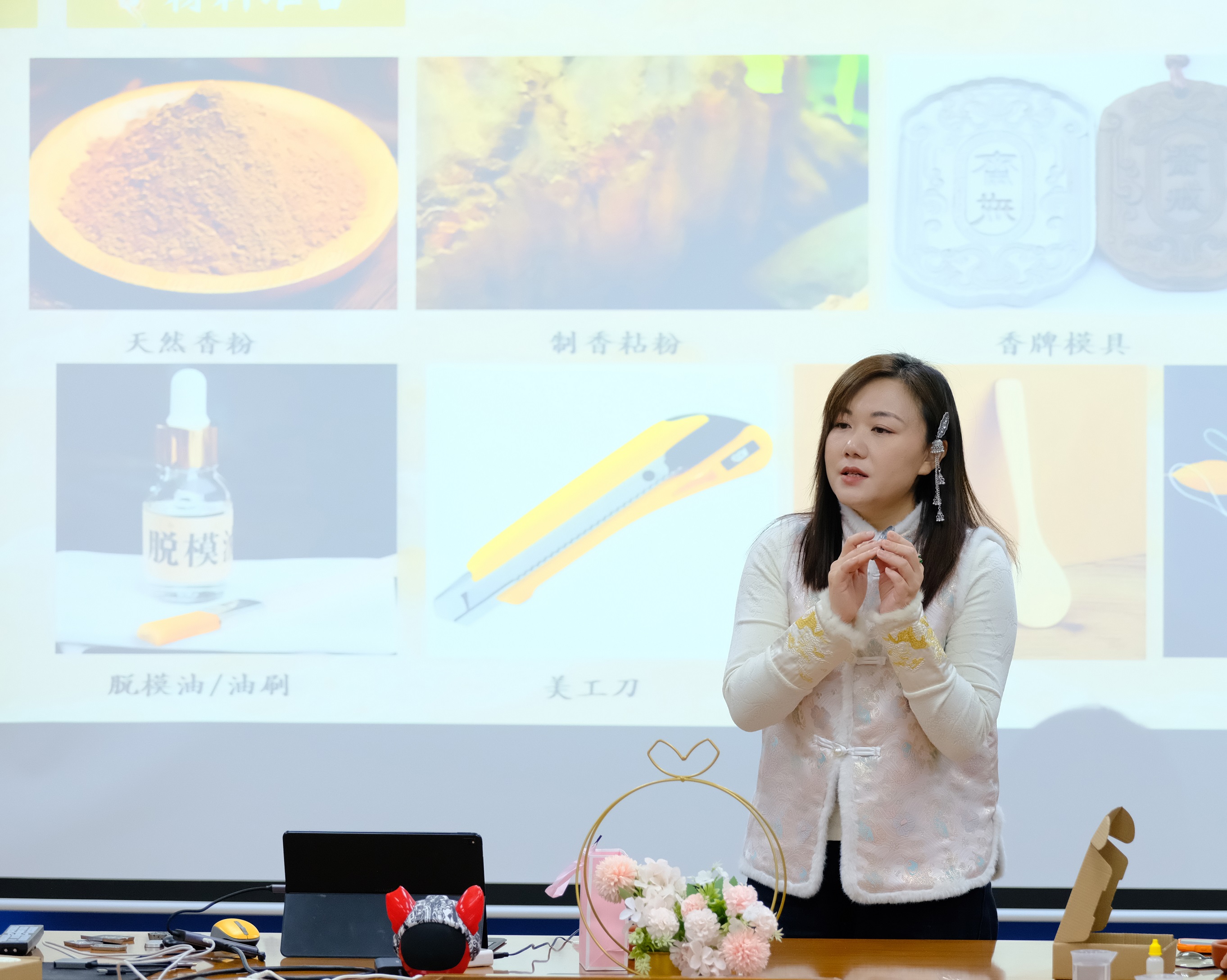 本次活动特邀专业老师线上线下同步教学,带领老师们体验中国传统香文化中的瑰宝——古法香牌制作。